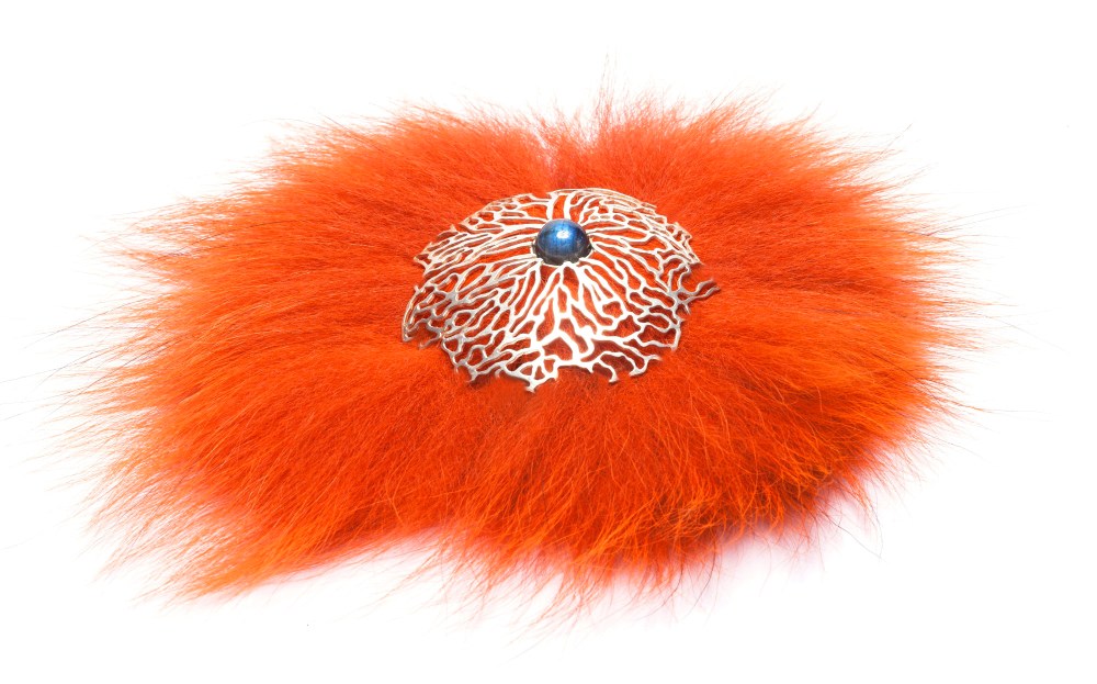 Featherred labyrinth April 9, 2019May 13, 2019 by mavilita In Brooches em.br.1– Feathered labyrinth, brooch, 950 silver, labradorite, natural fiber