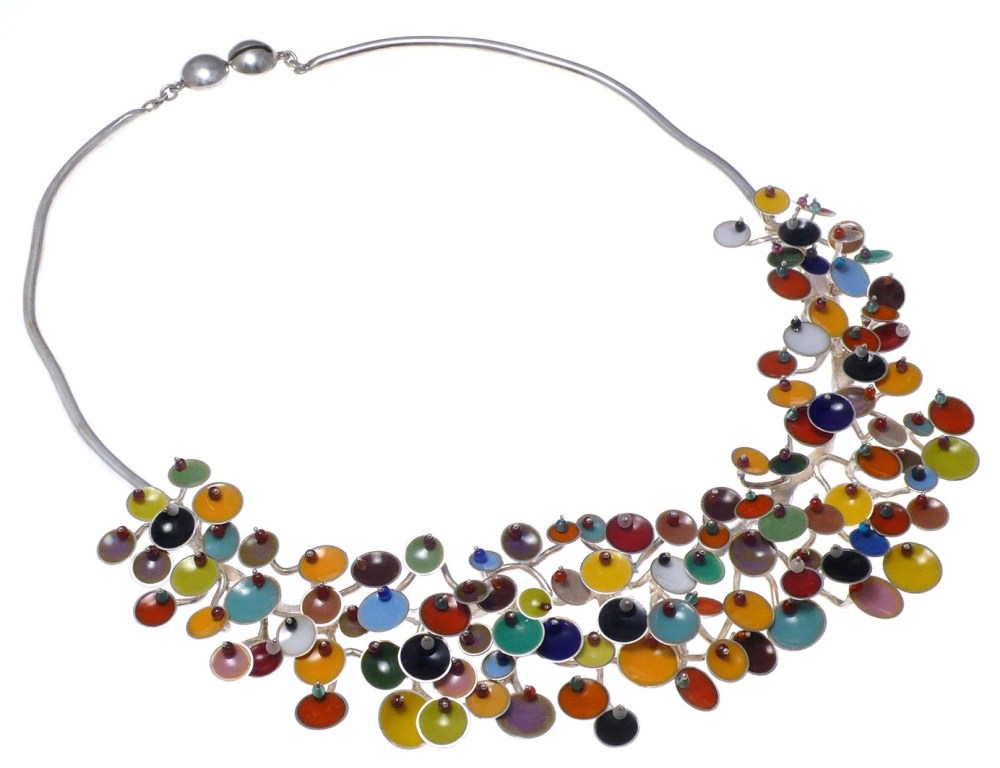 Fluorescences April 9, 2019May 13, 2019 by mavilita In Necklaces va.co.1– Fluorescences, necklace, 950 silver, vitreous enamel, cornelian, onyx, turquoise, garnet, jadeite, rose quartz
