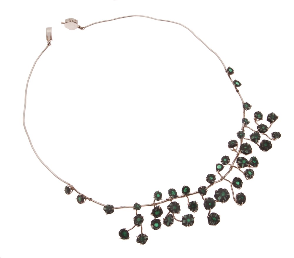 Green blooms April 9, 2019May 13, 2019 by mavilita In Necklaces es.co.1– Green blooms, necklace, 18 karat palladium grey gold, rough emerald trapiche (rarity of Colombian emerald, unique in the world)