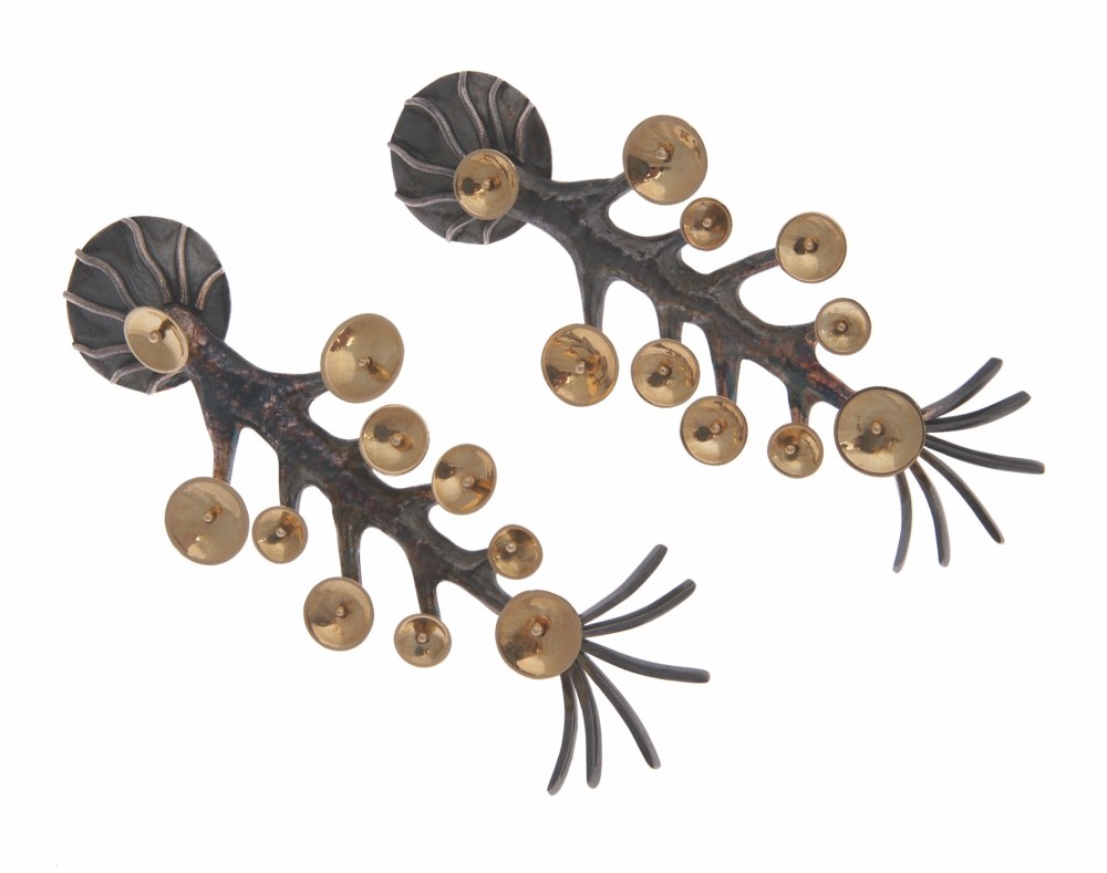 Inverted tree April 9, 2019May 11, 2019 by mavilita In Earrings va.ar.8– Inverted tree, earrings, 18 carat yellow gold, 950 silver, patina