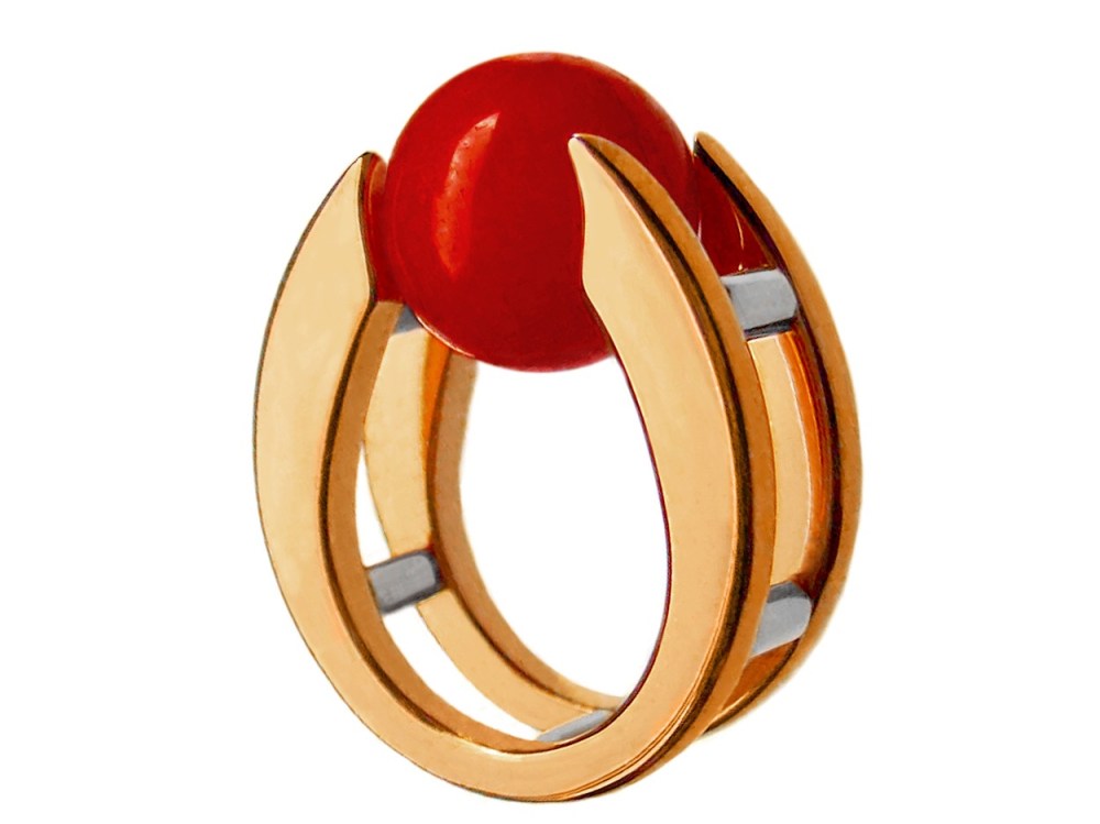Ma’a (Metaphor of the earth spinning in the space) April 7, 2019May 7, 2019 by mavilita In Rings wa.an.2– Ma’a (Metaphor of the earth spinning in the space), ring, 18 karat red gold, recycled red coral