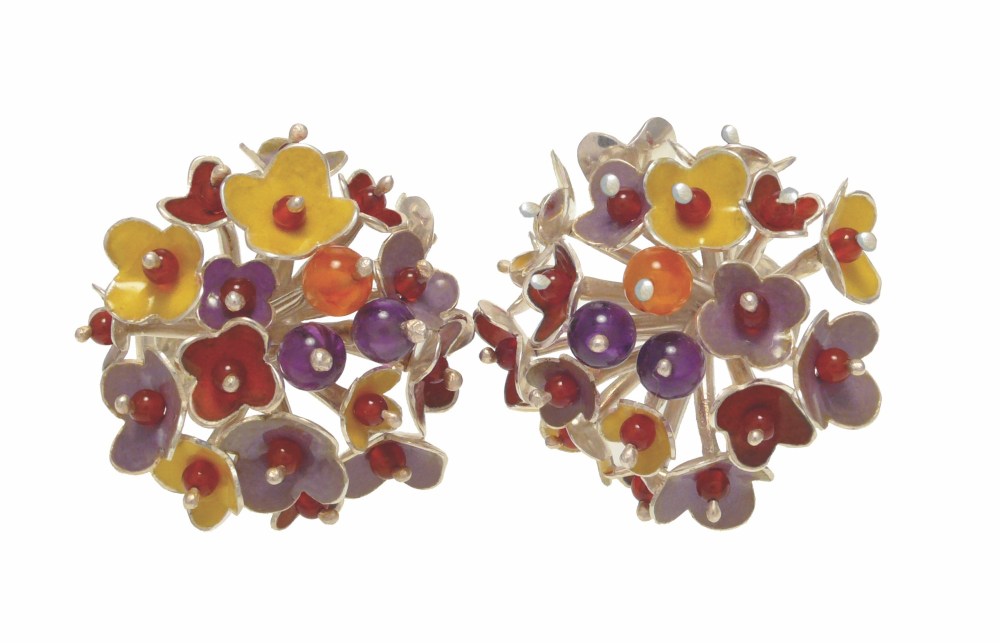 Spring Blossoms April 9, 2019May 11, 2019 by mavilita In Earrings je.ar.1– Spring Blossoms, earrings, 950 silver, vitreous enamel, cornelian