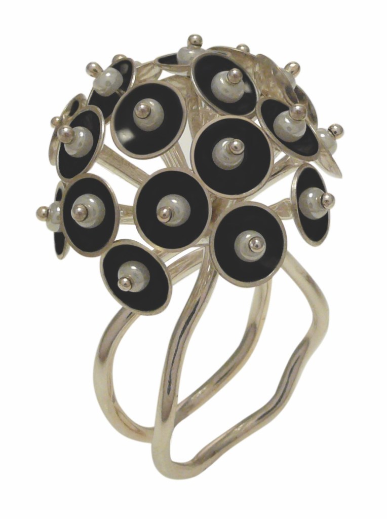 Sway ring April 9, 2019May 7, 2019 by mavilita In Rings va.an.1– Sway ring, ring, 950 silver, vitreous enamel, pearls