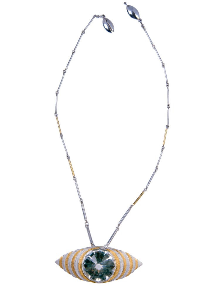 The underside of the gaze April 9, 2019May 13, 2019 by mavilita In Necklaces em.co.2– The underside of the gaze, necklace, 24 karat gold, 950 silver, Colombian hyaline quartz