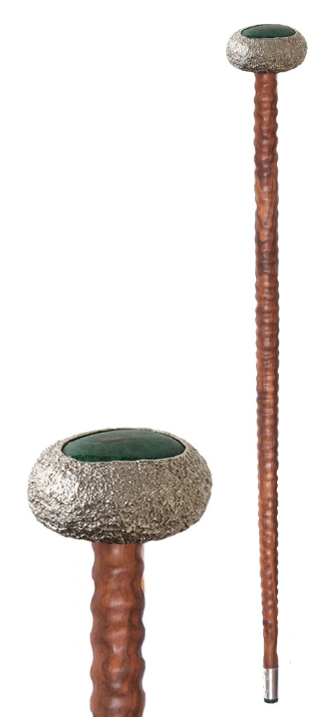 Waterhole April 9, 2019May 13, 2019 by mavilita In Canes em.ba.1– Waterhole, cane, 950 silver, patina, Colombian emerald, okendo wood